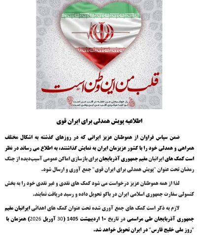 به دنبال پرسش های متعدد اتباع محترم جمهوری آذربایجان در خصوص آخرین وضعیت سفر به ایران ، به آگاهی می رساند: کلیه مرزهای زمینی جمهوری اسلامی ایران از گذرگاههای موجود میان جمهوری آذربایجان و جمهوری خودمختار نخجوان با ایران به روی برادران و خواهران آذربایجانی باز است و مقررات قبلی در خصوص لغو روادید ورود به ایران برای آنان کماکان اجرا می شود.