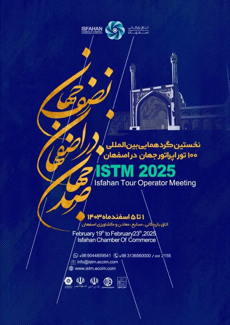 نخستین گردهمایی بین المللی 100 تورگردان جهان از 1 تا 5 اسفند 1403 (19 تا 23 فوریه 2025) در شهر اصفهان برگزار خواهد شد. علاقمندان جهت شرکت و کسب اطلاعات بیشتر می‌توانند به آدرس اینترنتی www.istm.eccim.com مراجعه یا با شماره تلفن 00989044859541 تماس حاصل نمایند.
